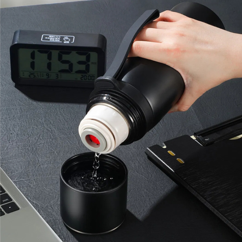 A alça de transporte integrada torna a brisa que acelera. Precisa de um gole rápido? A tampa funciona como um copo prático. Seu vazamento - o design da prova garante que você possa jogá -lo na sua bolsa sem derramamentos, enquanto o isolamento avançado de vácuo mantém suas bebidas quentes ou frias por horas.