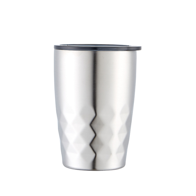 Este copo de aço inoxidável apresenta um design a vácuo, tornando-o ideal para uso portátil em ambientes automotivos. Mantém a temperatura de forma eficaz, seja para bebidas quentes ou frias, podendo também servir como xícara de café. O corpo da xícara incorpora elementos de design em forma de diamante, combinando praticidade com apelo estético. Perfeito para diversas ocasiões, atende à demanda por preservação conveniente da temperatura da bebida e fácil uso.