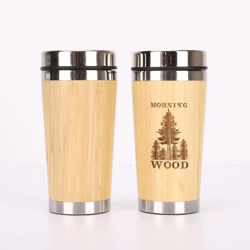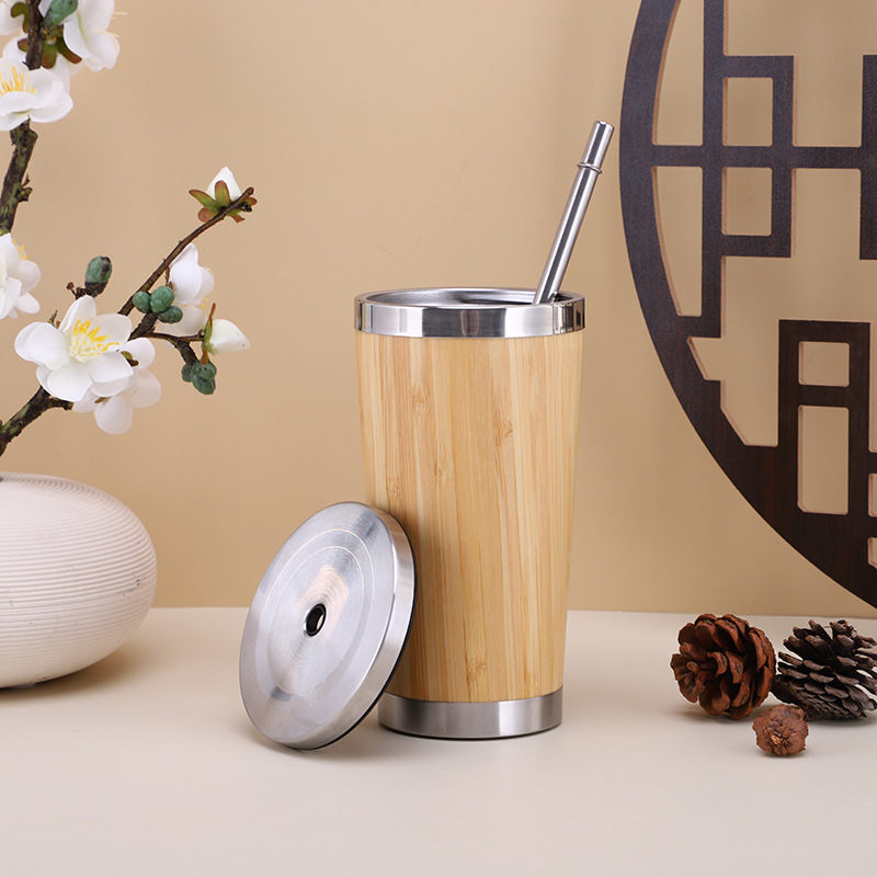 Um copo criativo com isolamento de aço inoxidável de camada dupla feito de bambu, incorporando a elegância refinada dos negócios e da vida diária.