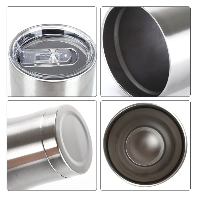 Este é um close do interior do copo isolado em aço inoxidável. O copo é feito de aço inoxidável com superfície lisa, o que não é fácil de reter manchas e odores. É fácil de limpar e pode manter melhor o sabor puro das bebidas. Além disso, o material de aço inoxidável é resistente à corrosão, seguro e saudável de usar.