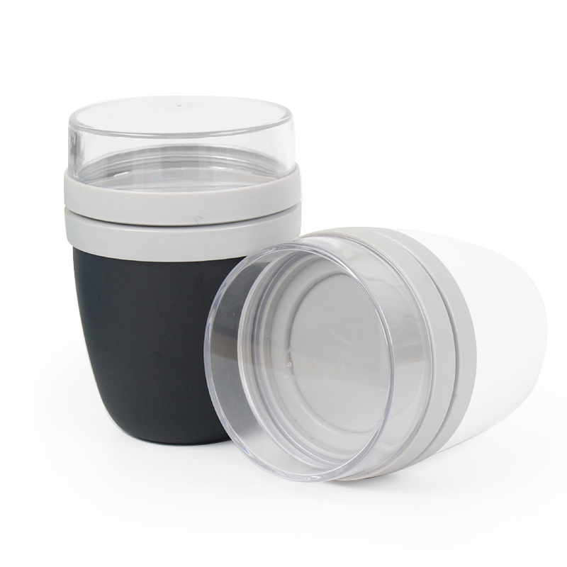 Cansado de sacrificar uma alimentação saudável por conveniência? Nossa xícara de café da manhã com compartimento duplo foi projetada para transformar suas manhãs e dias agitados, trazendo equilíbrio ao seu estilo de vida. O recipiente principal de 500ml contém seu iogurte favorito, aveia noturna, pudim de chia ou salada fresca, enquanto o compartimento superior transparente de 200ml mantém granola, nozes, frutas ou molho fresco e separado até que você esteja pronto para comer. Chega de cereais encharcados ou verduras murchas – apenas refeições frescas e deliciosas quando e onde você estiver.