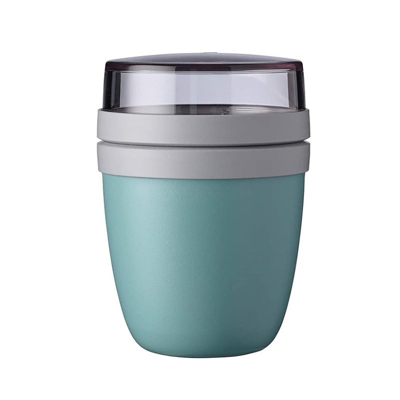 Este recipiente versátil não é apenas para as manhãs. Use-o para saladas na hora do almoço, lanches da tarde (pense em homus e vegetais) ou até mesmo pudim de chia como sobremesa. O compartimento superior de 200ml é perfeito para distribuir lanches, para que você evite comer demais e mantenha o controle de seus objetivos de saúde. Esteja você preparando a refeição da semana, fazendo um piquenique ou indo para o escritório, esta xícara se adapta à sua vida - uma refeição deliciosa de cada vez.