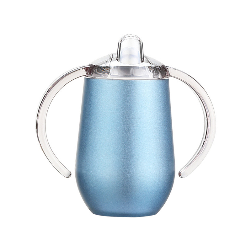 Com uma capacidade de 10 onças (cerca de 300 ml), ela é de tamanho visualmente moderado e vem com uma alça de orelha dupla para facilitar a aderência, tornando-o adequado para as crianças usarem e transportarem.