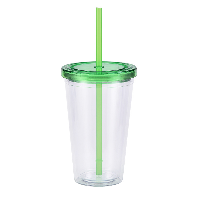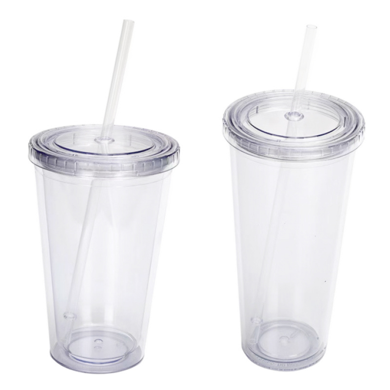 Copo frio de copo de plástico transparente reutilizável de camada dupla