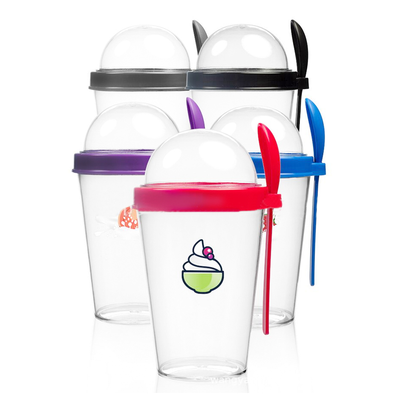 Copo de aveia/leite de plástico 400ML com tampa e colher - copo portátil de café da manhã para cereais, iogurte, saladas