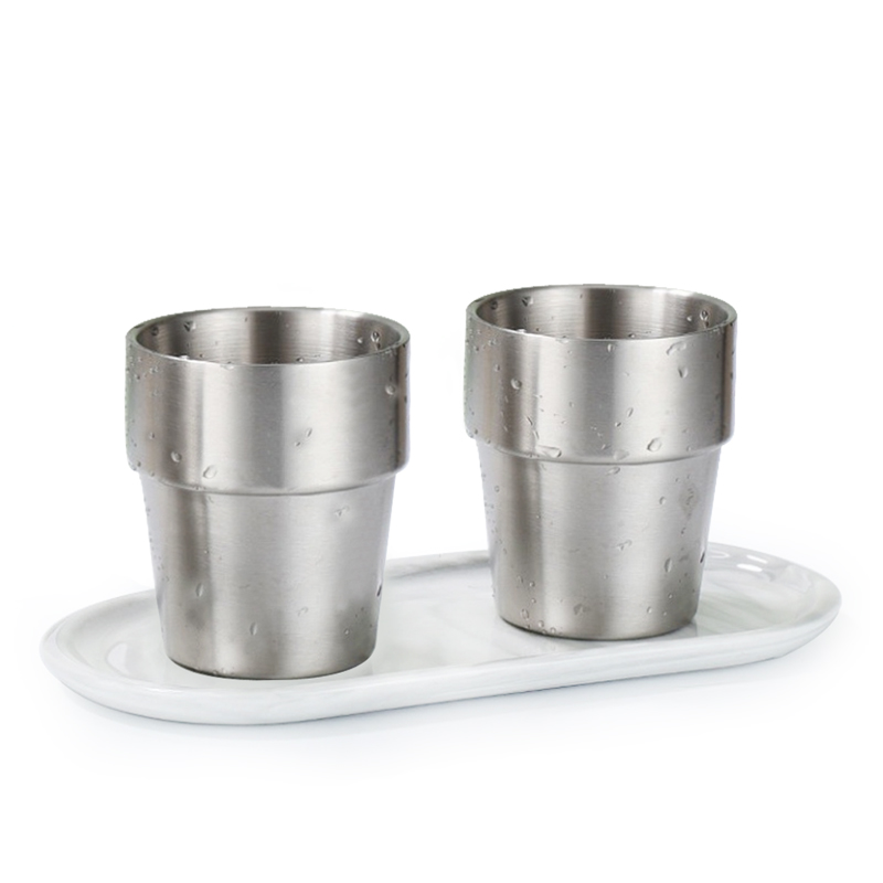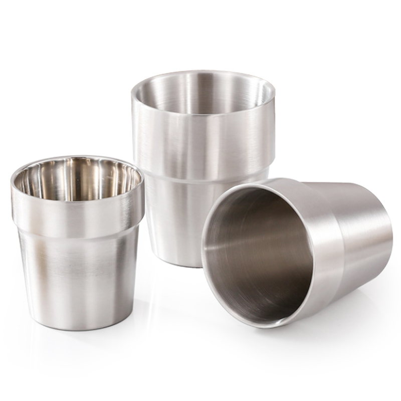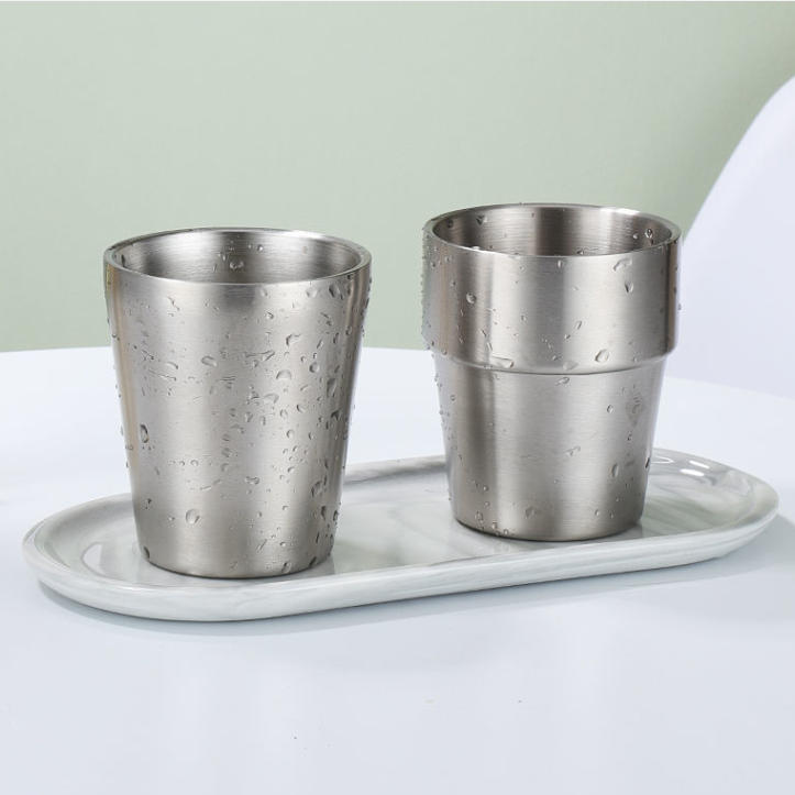 A silhueta elegante em camadas não é apenas pela aparência – este copo equilibra estilo moderno com praticidade: o formato cônico cabe confortavelmente nas mãos, enquanto o acabamento prateado/dourado escovado adiciona um toque premium a qualquer ambiente (de cozinhas minimalistas a balcões de cafés modernos). Não é apenas uma xícara – é uma pequena atualização de estilo para cada gole.