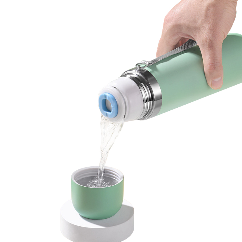 Observe seu design inteligente: a tampa funciona como um copo. Quando você precisa de uma bebida, apenas desaparafuse a tampa, e ela se transforma em uma embarcação prática, tornando conveniente que você esteja no trabalho, viajando ou em movimento.