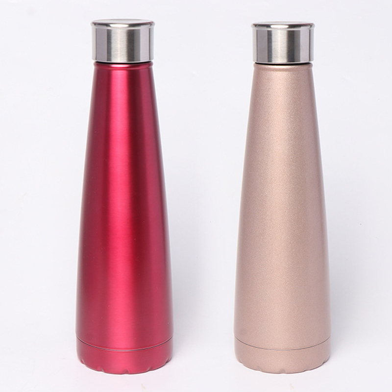 Essas garrafas de aço inoxidáveis e elegantes são seus companheiros perfeitos para desfrutar de um tempo agradável. Você pode preenchê -los com sabores diferentes, como smoothies, leite, suco ou café. Com seu design cônico e elegante e acabamentos metálicos (em prata, ouro e bronze), eles não apenas mantêm suas bebidas na temperatura desejada, mas também adicionam um toque de elegância à sua rotina diária. Esteja você no trabalho, academia ou em uma viagem, essas garrafas permitem saborear suas bebidas favoritas a qualquer momento, em qualquer lugar.