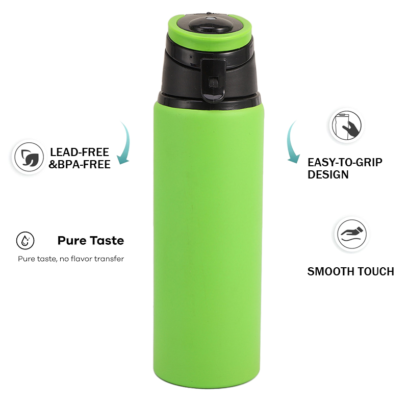 Esta elegante garrafa de água esportiva portátil de alumínio com capacidade de 710ml tem um design muito atencioso. A grande capacidade de 710ml pode atender às necessidades de bebida durante longos esportes ao ar livre, exercícios físicos ou viagens, e reduzir o problema de hidratação frequente.