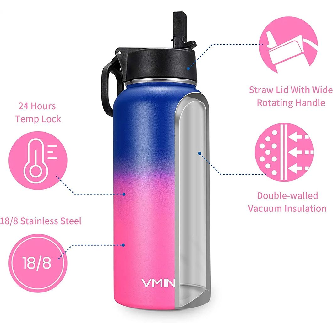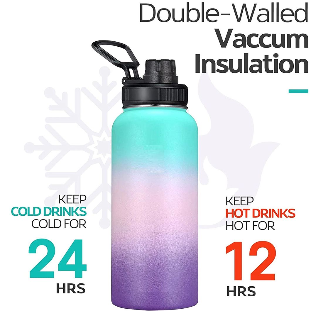 A garrafa possui um corpo resistente de aço inoxidável com uma superfície pintada em cores que proporciona uma aparência limpa e moderna, ao mesmo tempo que oferece resistência ao desgaste diário. A alça integrada oferece uma pegada equilibrada, facilitando o transporte mesmo quando a garrafa está cheia com capacidades maiores, como 40 onças ou 64 onças. A abertura de boca larga permite o enchimento sem esforço com cubos de gelo ou bebidas e simplifica a limpeza interna.