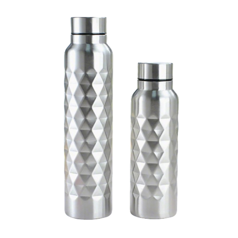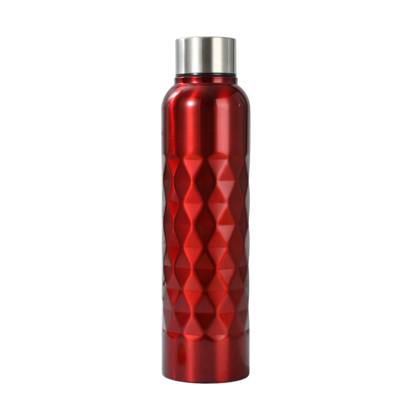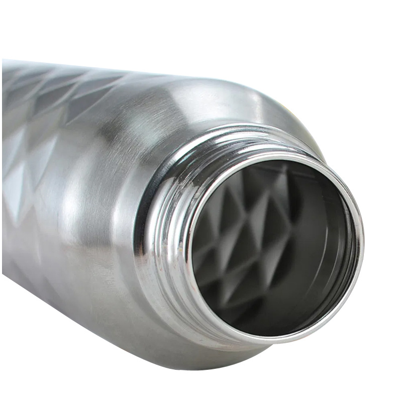 Garrafa de bebida de aço inoxidável com textura de diamante para esportes