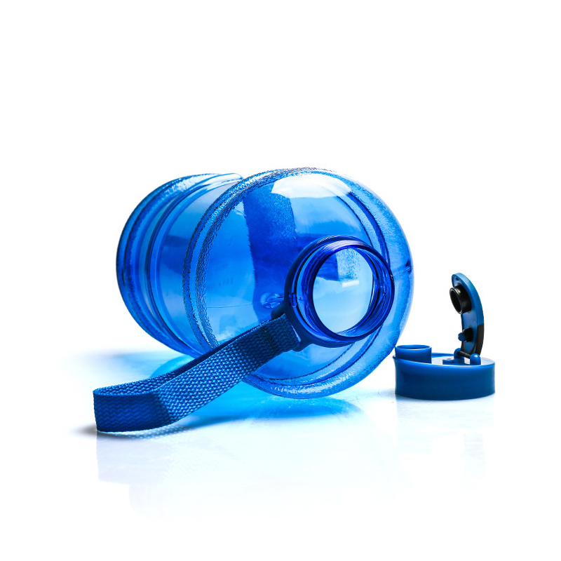 Esta garrafa de água apresenta vários detalhes atenciosos. Há uma alça de tecido durável anexada, facilitando o transporte, o que é conveniente para atividades ao ar livre ou uso diário. A tampa tem um design flip-top seguro; quando aberto, revela boca larga, permitindo fácil enchimento com água ou adição de cubos de gelo, além de facilitar a limpeza. O corpo azul transparente da garrafa não só parece elegante, mas também permite verificar facilmente o nível da água.