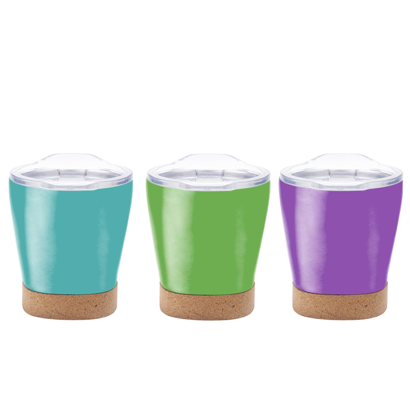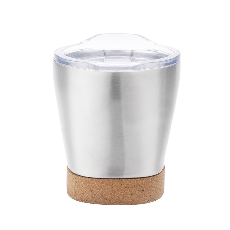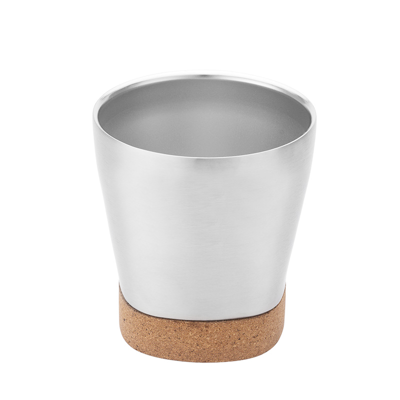 Criados a partir de aço inoxidável, este copo possui uma silhueta elegante e fluida com contornos arredondados. Sua base incorpora uma base de cortiça marrom macia que cria um contraste impressionante com o corpo do copo metálico no material e na cor. Esse design não apenas adiciona um ambiente natural e caloroso, mas também eleva a estética geral com simplicidade sofisticada, tornando -o versátil o suficiente para complementar várias preferências de estilo.