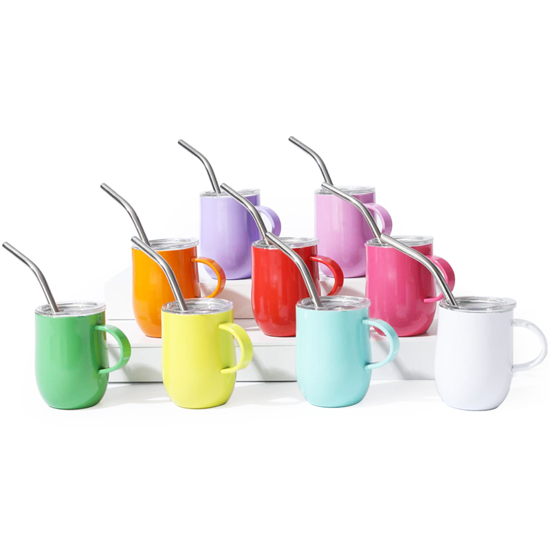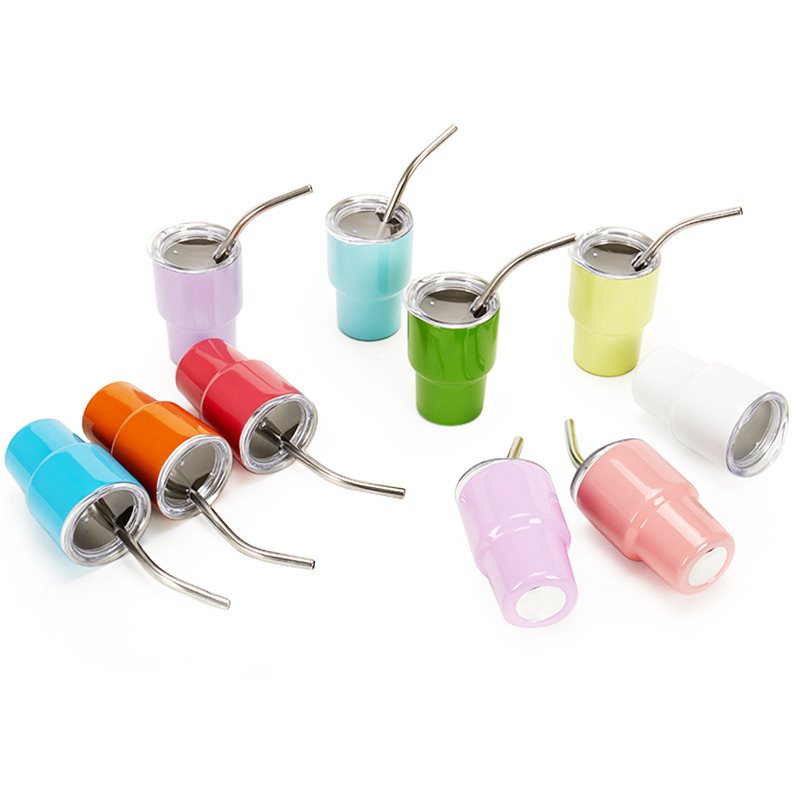 Mini copo de aço inoxidável colorido com tampa e canudo