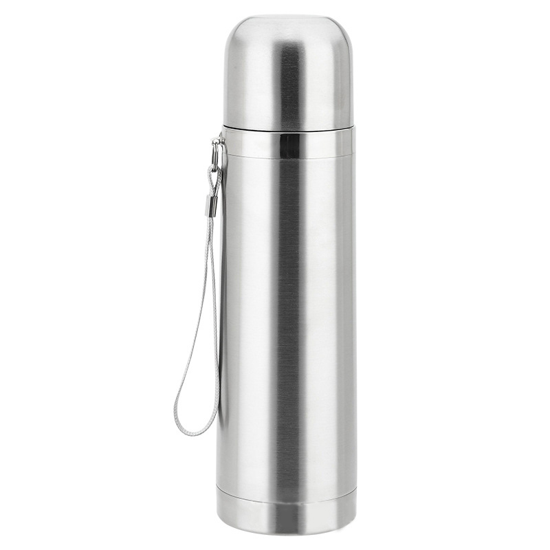 Este é um frasco de vácuo (também conhecido como garrafa térmica). Os frascos a vácuo são projetados para manter líquidos quentes ou frios por longos períodos. Eles trabalham usando um recipiente duplo com paredes com um vácuo entre as paredes, o que minimiza a transferência de calor por condução e convecção. A boca larga e a tampa flexível tornam conveniente para derramar líquidos e beber. Como produto de atacadista, é provável que as empresas comprem a granel para revenda, adequadas para vários ambientes, como escritórios, escolas ou atividades ao ar livre.