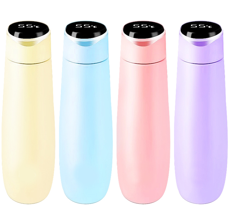 Temperatura inteligente mostrando garrafa de água térmica de aço inoxidável,